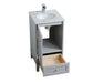 While unassuming, this 18" vanity in a grey finish sure knows how to redefine luxury. The sleek brushed nickel knobs adorn the Single cabinet door and base drawer which allows you to store your bathroom toiletries and necessities. Standing strong on oblique legs and dressed with a Calacatta engineered marble countertop, this vanity will surely create beauty and casual elegance in your bathroom or powder room.