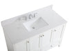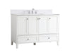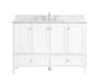 While unassuming, this 48" vanity in a white finish sure knows how to redefine luxury. The sleek brushed nickel knobs adorn the 4 cabinet doors and 2 bottom drawers which allow you to store your bathroom toiletries and necessities. Standing strong on oblique legs and dressed with a Calacatta engineered marble countertop, this vanity will surely create beauty and casual elegance in your bathroom or powder room. Comes with a matching backsplash to complete the look and protects your wall.