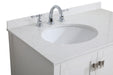 Never compromise beauty--the Irene collection stunning vanity in a white finish will add lovely sophistication and complement any bathroom or powder room, while utilizing its charm and function to provide you with ample storage spaces. Brushed nickel pulls gently adorn the minimalist cabinet doors and drawers at the base, allowing for you to store away your bathroom essentials. The calacatta engineered marble countertop, porcelain undermount sink, dignified subtle engravings on the side edges, and squared legs all come together to create contemporary beauty. Work with your space, and design a beautiful room, no matter the size. Comes with a matching backsplash to complete the look and protects your wall.