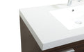 Modern sophistication is defined within the walnut finish and silver barpulls of this vanity. Its length makes it the perfect addition to any sized home, and saves space with its storage area hidden behind the double cabinet doors and one bottom drawers. Topped with a highly durable resin white counter top and an integrated sink, this modern design will add everlasting class to your bathroom and powder room.