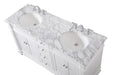 The Wesley Collection vanity cabinet will bring a settle pop of color into your bathroom. The white finish is a sophisticated color which creates a calming atmosphere in the room. The brushed nickel knobs bring a vibrant touch to balance the vanity. With the detailed engravings, the cabinet catches eyes with its beautiful lining work. Open the cabinet doors to store what you desire and make use of the spacious area. To top it off, the Carrara white marble adds a luxury and modern finish to the countertop.