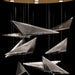 Our Volo Collection captures the quiet momentum of flight through cascading geometric forms and customizable, suspended compositions. Handcrafted studio glass—available in clear, smoke, or amber with hammered or linear textures—evokes the interplay of wind, light, and elevation with striking elegance."