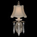 Wall sconce of steel in warm antiqued silver finish with brilliant crystal drops. Elegant, hand-tailored shade. ADA Compliant.
