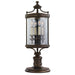 Adjustable Pier/Post mount of aluminum in a fine bronze finish. Features clear hand-blown glass and antiqued candles. Instructions for a 3" post mount application included.