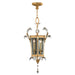 Lantern in a warm muted gold leaf finish featuring beveled crystal accents.