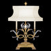 Table Lamp in a warm muted gold leaf finish featuring beveled crystal accents.