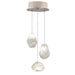 Master glass artisans blend quartz with other minerals to create Clear Quartz glass drop pendant with gold-toned silver leaf canopy. Also available in platinized silver leaf with choice of additional crystal glass options. For 220V, item is configured with halogen G4 bulb(s).