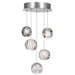The Nebula creates the essence of cosmos through hand forming of optic impressions while infusing the crystal with the reflective quality dichroic glass. Each piece is as individual as the rainbows of light from the galaxies above. Silver leaf canopy. Also available in gold-toned silver leaf with choice of additional crystal glass options. For 220V, item is configured with halogen G4 bulb(s).