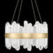 LED pendant influenced by the ephemeral appearance of illuminated rock crystal, which has been interpreted into handmade glassworks with the collaboration of the Fine Art studio glass master craftsmen. Formed of glass spires that mimic natural crystal formations as much as they do rays of sunlight, and clean metal lines in unadorned but precious finishes. Available in silver leaf, gold leaf or patinated bronze.