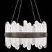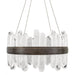 LED pendant influenced by the ephemeral appearance of illuminated rock crystal, which has been interpreted into handmade glassworks with the collaboration of the Fine Art studio glass master craftsmen. Formed of glass spires that mimic natural crystal formations as much as they do rays of sunlight, and clean metal lines in unadorned but precious finishes. Available in silver leaf, gold leaf or patinated bronze.