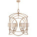 Executed by skilled metal artisans, this varicolored gold chandelier is inspired by the 1920's unique transitional period in architecture & design in Cienfuegos. Also available in weathered greige patina or antique bronze. Includes textured natural greige fabric shades.