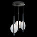 Sculptural three-drop linear pendant with downlight, inspired by the Greek goddess of the moon, Selene. Features illuminated hand-cast glass in Full Moon White. Available in Standard Finishes, Black Iron, Gold Leaf, Silver Leaf, and Soft Gold Leaf. Also available with New Moon Clear hand-cast glass. Rod(s) are connectable segments for a customizable length (two 18", two 12", one 6", and one 3").