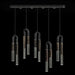Linear five-drop pendant featuring soft curves and the inclusion of metals carefully handcrafted to transition from parchment to magnificent glass, culminating in a stunning beam of light. Suspended by connectable rod segments for a customizable length. Available in a wide range of exquisite finishes, including our five standard finishes and our newest Soft Ombre Bronze & Soft Ombre Silver, with the choice of two parchment colors, Charcoal and Smoke. Also available with no parchment.