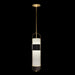 LED pendant featuring illuminated cylinders formed by handcrafted glass set within a silhouette, beautifully lit from within, spanning space vertically or horizontally. Shown in our standard Black and Gold Leaf finish with "Bahama Sand" opaline white glass capturing a natural micro pebble finish, reminiscent of shells in the sand. Rod comes in connectable segments for a customizable length.