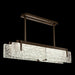 Linear LED pendant featuring highly polished parallel forms of rich textured, hand-cast crystal in clear or highlighted with antiqued gold leaf. Choice of four finishes, champagne tinted gold leaf finish, silver leaf, bronze (shown) or hand rubbed black iron. For Indoor use only.