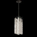 LED pendant featuring highly polished parallel forms of rich textured, hand-cast crystal in a clear or Gold Leaf choice. All available in three standard finish options, Soft Gold Leaf , Silver Leaf, or Black Iron. Shown in Black Iron with clear glass.