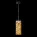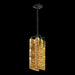 LED pendant featuring highly polished parallel forms of rich textured, hand-cast crystal in a clear or Gold Leaf choice. All available in three standard finish options, Soft Gold Leaf , Silver Leaf, or Black Iron. Shown in Black Iron with gold glass.