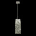 LED pendant featuring highly polished parallel forms of rich textured, hand-cast crystal in a clear or Gold Leaf choice. All available in three standard finish options, Soft Gold Leaf , Silver Leaf, or Black Iron. Shown in Silver Leaf with clear glass.
