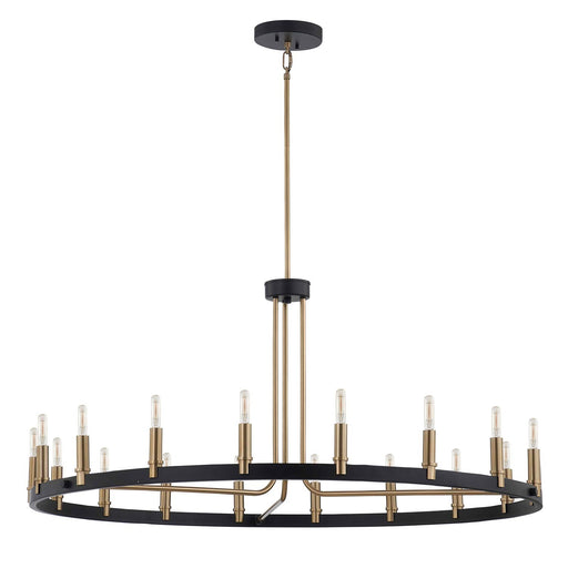 Details:Product Type: CandleFinish: Matte Black w/ BrassMeasurements:Width / Dia: 42.00"Height: 18.50"Canopy: 6" Dia. x 1" H"Lamping:Bulb Qty: 18, ...