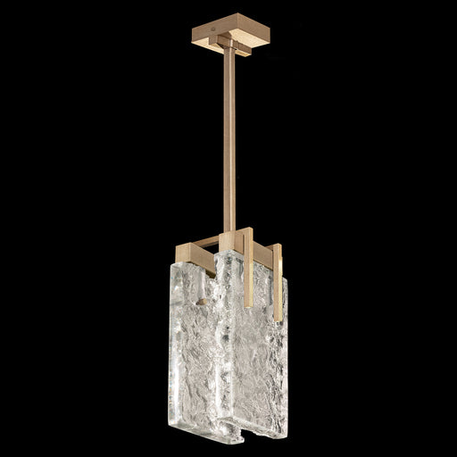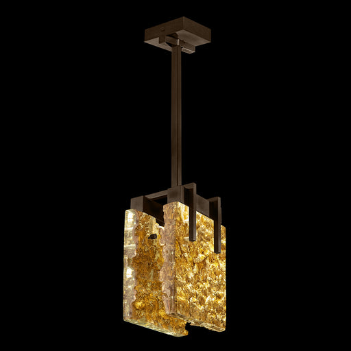 LED pendant featuring highly polished parallel forms of rich textured, hand-cast crystal in clear or highlighted with antiqued gold leaf. Choice of...