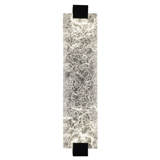 Indoor aluminum sconce features a three-dimensional contrast of deep textured and polished cast glass. This stunning landscape of the glass, illumi...