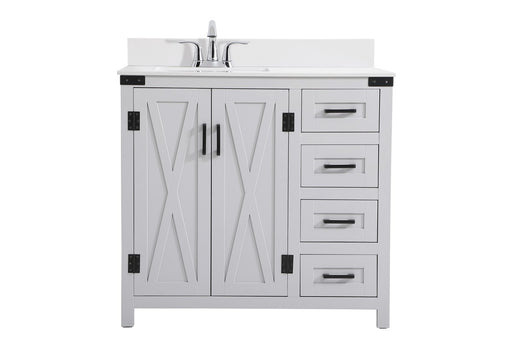 The Grant Collection 36 in. vanity is a practical and stylish upgrade for your bathroom. Its grey finish is highlighted by the engineered white sto...