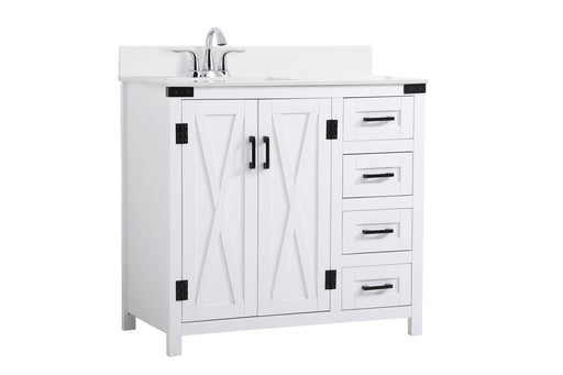 The Grant Collection 36 in. vanity is a practical and stylish upgrade for your bathroom. Its white finish is highlighted by the engineered white st...