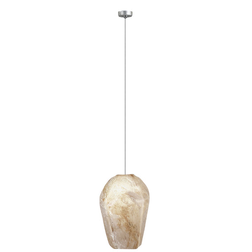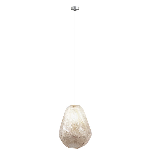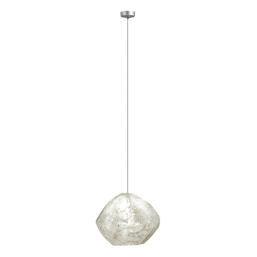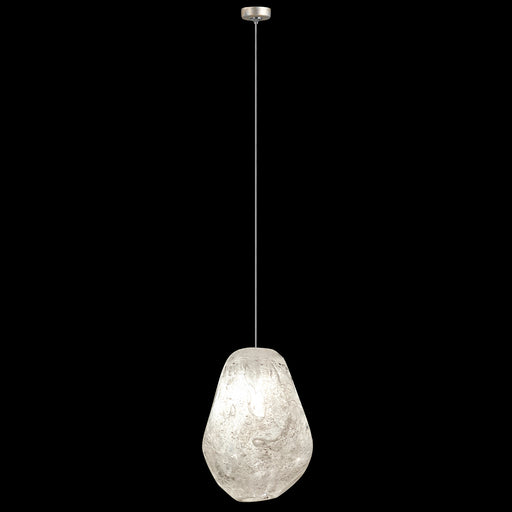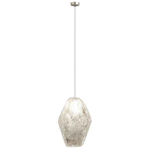 Master glass artisans blend quartz with other minerals to create Natural Quartz glass drop pendant with platinized silver leaf canopy. Also availab...