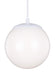 The Leo - Hanging Globe one light indoor pendant in white is an ENERGY STAR qualified lighting fixture that uses LED bulbs to save you both time and money. While hanging globes are one of lighting's hottest trends, Sea Gull's timeless Leo Collection has been around for 50 years! Constantly evolving with the times, these classic pendants are now offered with NEW Clear Seeded glass and in Satin Aluminum finish. Adjustable cloth cords allow for unlimited variations of hanging heights. All glass softly diffuse the light, each fixture comes with 54âââ¬Ã of cuttable cord to customize the installation exactly to your needs. Easily convert every piece in the collection to LED by purchasing LED replacement lamps sold separately. All fixtures are qualified and California Title 24 compliant and damp rated for use in sheltered, damp environments like bathrooms, covered patios or porches.