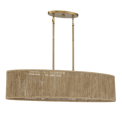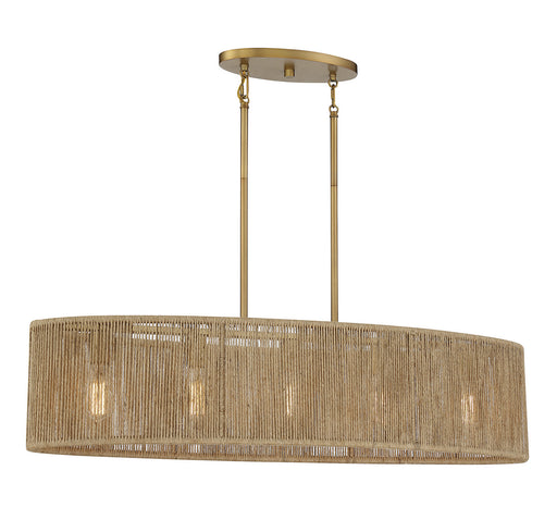 This Savoy House Ashe 5-light linear chandelier has a warm, organic design. Its oblong shade is strung with rows of textured rope, allowing light t...