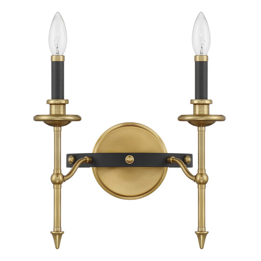 The Savoy House Consulate 2-light wall sconce offers up stately and traditional style with a bold new twist thanks to the two-tone Warm Brass and B...