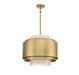 The Savoy House Beacon 4-light pendant gives a stylish update to a classic Modern design. White frosted glass accents add balance to this pendant, which is finished in Burnished Brass. Measuring 20" wide x 16" high, the fixture provides ample illumination from four standard size bulbs. The adjustable hanging height from 22 to 68 inches adds to the versatility.