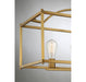 Generous in scale, the Palladian collection offers a streamlined aesthetic and an open cage that comfortably covers a wide area without looking heavy. With an adjustable height from 22" to 68" and measuring 38" long x 12" wide, this linear chandelier in a warm brass finish provides ample illumination over a dining table or island from five 60-watt standard size bulbs.