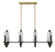 Bring in the midcentury modern inspired look of the Savoy House Midland 8-light linear chandelier. Tall shades of clear ribbed glass sit within a sharp, intriguing frame finished in the beautiful pairing of matte black and warm brass. Midland is 40" in length, 16" in width and has an adjustable height ranging from 20" to 66". It uses eight candelabra size bulbs of up to 60 watts per bulb. Comes with eight 12" downrods and two 6" downrods, plus 80" of cord.