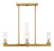 This effortlessly elegant Savoy House Carina 5-light chandelier features a beautiful Warm Brass finish and lights standing at different heights, creating a pleasing pattern that is sure to draw attention. Each light is encased in a clear ribbed glass shade to add texture. Carina is 24" in width and has an adjustable height ranging from 12" to 56". Comes with eight 12" downrods and two 6" downrods. Uses five candelabra size bulbs of up to 60 watts per bulb. Bulbs not included.