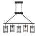 In the Savoy House Glenwood 5-light linear chandelier, strong geometric lines combine with gorgeous glass for a look you'll love every day. Designed by Brian Thomas, the straightforward framework of the Glenwood has a classic English bronze finish that blends well with other hardware in your home. A central bar holds five rectangular lanterns with metal grid frames and panes of Piastra glass, creating an artisan aesthetic. The five 60W standard size bulbs of this linear chandelier are hung at staggered heights along the 45.13" length. It's an ideal shape for your dining room, kitchen island, living room, breakfast area, family room, great room, game tables, media room, office or home bar.