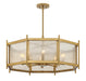 Create a warm and welcoming glow with the geometric chic Savoy House Jacobs 8-light chandelier. The clear mica glass shade pairs beautifully with the Warm Brass finish and imparts eye-catching texture. Jacobs is 32" in width and has an adjustable height ranging from 15.5" to 69.5". Comes with four 12" downrods and one 6" downrod. Uses eight candelabra size bulbs of up to 60 watts per bulb. Bulbs not included.