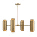The Savoy House Lio 8-light chandelier is part of Moderne by Breegan Jane, bringing her signature approachable modern luxury style to your home. Breegan loves the timeless, elevating beauty of brass, as seen in this sleek and chic design. Bold solid metal cylinders finished in champagne-toned Noble Brass hold lights that shine out above and below to create a concentrated and dramatic lighting look. Lio is 31" in width and has an adjustable height ranging from 11.5" to 65.5". Comes with four 12" downrods and one 6" downrod. Uses eight candelabra size bulbs of up to 60 watts per bulb. Bulbs not included.