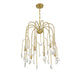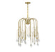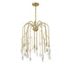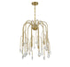 The Art Deco-inspired Savoy House Anholt 6-light chandelier is like a waterfall of glamour featuring curved branching arms adorned with faceted crystal drops in different shapes and sizes. Noble Brass finish. Anholt is 28.25" in height and 22.75" in width. It uses 6 candelabra size bulbs of up to 60 watts per bulb (bulbs not included). Comes with 120" of chain.