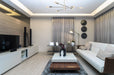 The open, structured look of the Savoy House Lyrique 6-light chandelier is a great choice for today's stylish interiors. The arms are adjustable, allowing you to create custom looks and change them on the fly. Finished in polished nickel. The hanging height is adjustable and this fixture can be mounted on a sloped ceiling. Chandeliers can be used in a wide variety of spaces, including but certainly not limited to dining rooms, living rooms, great rooms, bedrooms, kitchens, foyers, offices and even bathrooms! Bulbs not included. Try using stylized bulbs such as tubular shape for a different look! The polished nickel finish can be matched with nickel hardware or mixed with hardware in other finishes. Lyrique is perfect for contemporary style spaces and any room that has an edgy touch. When you choose a Savoy House lighting fixture, you can be certain you've selected a piece that will withstand the test of time.