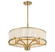 A boldly classic structure is given a touch of organic softness in this Savoy House Wynwood 5-light chandelier. Its shade showcases soft white string that, when combined with the warm brass finish, offers up a beautifully elegant effect. Wynwood is 24" in width and has an adjustable height ranging from 18" to 71.5". Comes with four 12" downrods and one 6" downrod. Uses 5 candelabra size bulbs of up to 60 watts per bulb (bulbs not included).