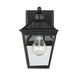Brighten the exterior of your home and welcome your guests in style with the Savoy House Ellijay 1-light outdoor wall lantern. The design mimics a vintage gas lantern with a classic tapered box shape and decorative top finial. The black finish looks terrific and blends well with other hardware and architectural materials. Panes of clear glass fill all four side panels and the roof panels, too. One 60W standard size bulb provides inviting and secure illumination. This lantern measures 6" wide, 9.75" high and extends 7" from the wall. You'll enjoy its timeless style and enhance the beauty of your property, whether on your porch, patio, sunroom, pergola or other outdoor walls in your garden and yard.