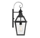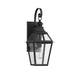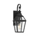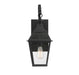 This Savoy House Jackson 1-light outdoor wall lantern is the perfect way to easily boost your home's curb appeal. It is crafted in a classic, timeless style with boldly angled curves, eye-catching pierced metal detail and a dramatic shepherd's hook. Panes of clear glass ensure a bright, beautiful glow and a generously sized backplate will help to cover any holes left from replacing previous fixtures. Jackson is finished in black with gold highlights to go well with anything and add a touch of glamour. Use this lantern beside your front and side doors or above your garage door. This fixture is 9" wide and 22.38" tall. It extends 9.88" from the wall. Uses a standard size bulb of up to 60 watts (not included).