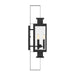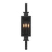 The Savoy House Ascott 3-light outdoor wall lantern is a standout source of cool contemporary lighting style for great first impressions. Sleek and slender, Ascott features lights inside panes of clear seeded glass in a sharply angled frame. Matte Black finish. Ascott is 32" in height, 6.5" in width and extends 9" from the wall. Uses three candelabra size bulbs of up to 60 watts per bulb. Bulbs not included. Wet area rated.