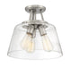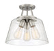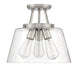 The Calhoun collection is distinguished by simple lines that can easily enhance transitional and contemporary decor. Measuring 11.5" high x 13" wide, this three-light semi-flush mount offers a clean silhouette in a satin nickel finish and clear glass shades. It is illuminated by three 60-watt standard size bulbs.