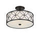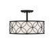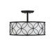 A beautiful geometric pattern adorns this Savoy House Reid 4-light ceiling light. Finished in matte black, the pattern pops brightly against the inner white fabric shade. Reid is perfect for boosting the illumination in any room, even smaller spaces. It is 13.5" in height and 20" in diameter. It uses four standard size bulbs of up to 60 watts per bulb.
