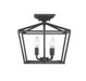 When you have a traditional aesthetic and want to inject a sense of modernism, choose this Townsend ceiling fixture. It's a classic lantern style with the familiar vintage appeal of colonial or old English candle fixtures, but the open geometric frame and matte black finish create a delightful contemporary twist. This timeless quality blends very well with your traditional, transitional, bohemian, contemporary or modern farmhouse decor. Four lights within the open framework have metal candle covers and hold 60W candelabra size bulbs. The fixture is 13" wide and 13" high with a semi-flush mounting, making a superb fit for your dining room, kitchen, living room, entryway, bedroom, closet, family room, office, stairway or great room.