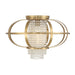 The Savoy House Idlewild 1-light ceiling flush mount boldly, beautifully combines the elegant and the edgy. A sleek metal cage structure surrounds a central column featuring rows of clear crystal beads that will look glamorous whether the light is on or off. Finished in Warm Brass. Idlewild is 13.25" in height and 20" in width. Uses one standard size bulb of up to 60 watts. The bulb is not included.