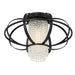 The Savoy House Idlewild 1-light ceiling flush mount boldly, beautifully combines the elegant and the edgy. A sleek metal cage structure surrounds a central column featuring rows of clear crystal beads that will look glamorous whether the light is on or off. Finished in Matte Black. Idlewild is 13.25" in height and 20" in width. Uses one standard size bulb of up to 60 watts. The bulb is not included.