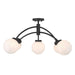 Bring in the big, bright and bold Savoy House Redfield 5-light semi-flush mount! Dazzling with mid-century modern inspiration, its curving arms hold orbs of swirling, stunning white strie glass that pairs beautifully with the Matte Black finish. Redfield is 16" in height and 36" in width, making it an excellent choice for illuminating large rooms. It uses five G9 LED bulbs of up to 3.5 watts per bulb. Bulbs not included.